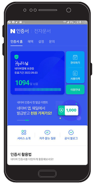 네이버 인증서는 유효기간이 3년으로 긴 편입니다.