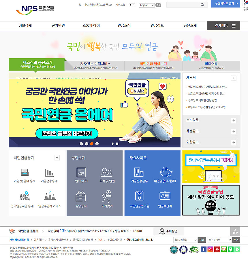 국민연금 관련 일반상담 및 문의 : 국번없이 1355상담지사안내 [ 전산 장애문의 : 노후준비지원실 노후준비기획부 이송재 ㅣ 문의 : 063-713-5923 ]